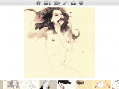 We’ve developed an application (a paint) thinking in what Conrad Roset’s fans would love. With this paint you’ll be able to use Conrad Roset’s brushes and textures to paint your own muse! You can also choose opacity, size and color…